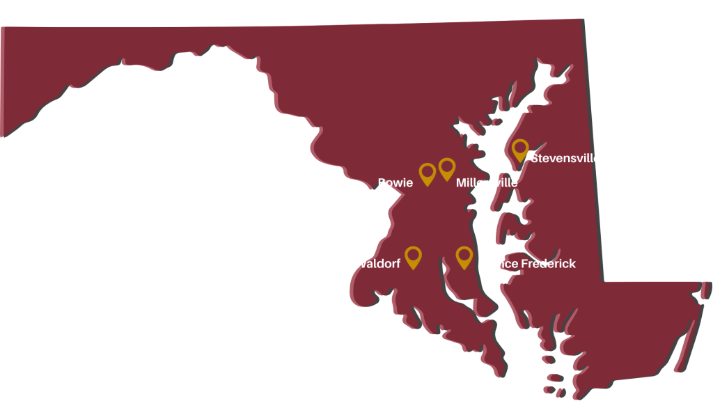 We offer multiple locations across Maryland, including our Main Office in Bowie. Our other locations include: Millersville, Prince Frederick, Stevensville and Waldorf.